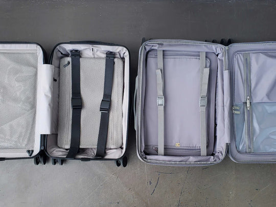 Monos (left) is committed to creating premium luggage with no compromises. See the up-close comparison photos.